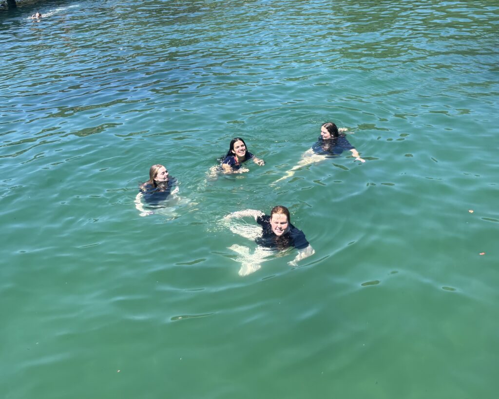 Students embraced a range of activities: reading in the shade, playing cards, catching up with friends, or joining in games of spike ball, soccer, cricket and basketball. Many enjoyed the playground and climbing equipment, while others built sandcastles or paddled along the shoreline. Older students enjoyed swimming from the jetty to shore.