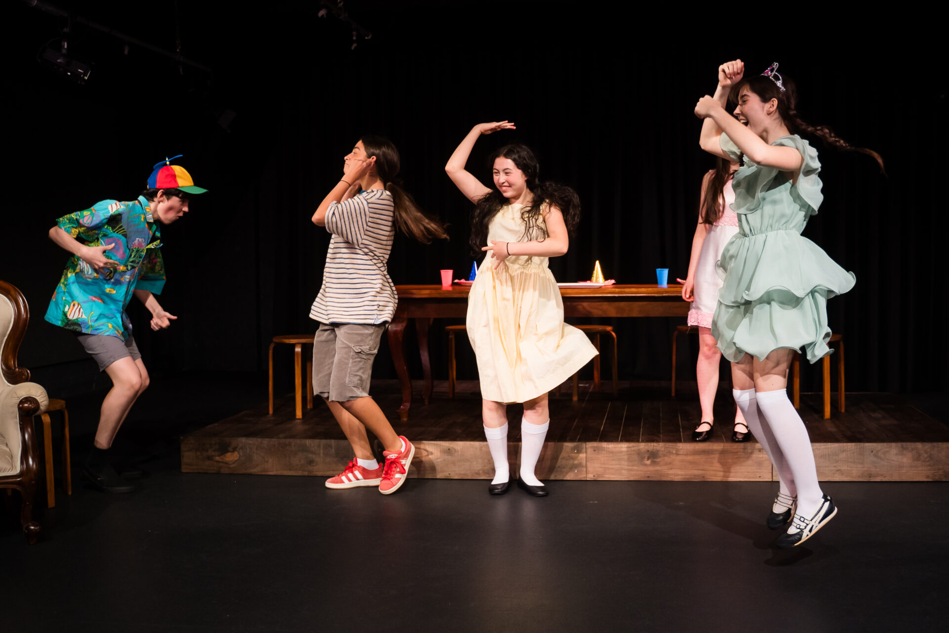 The Year 12 students shared, “It was a pleasure to see the Year 11s embody the characters we had so lovingly inhabited the year before. Their production of The Dining Room brought the play to life with such joy and unique interpretations that expanded the world of the play beyond our initial interpretations. The contrast between wounded father Standish, the flirtatious divorcée and the gaggle of rogue little children highlighted the diverse acting capabilities of these emerging actors, taking the audience on a profound journey through time. As senior students, we banded together to give feedback and push the students to their greatest potential, running classic over-the-top warm-ups to get the energy flowing. We employed various tactics to see them light up the stage, drastically improving from their earlier runs to their stage debut for an audience.