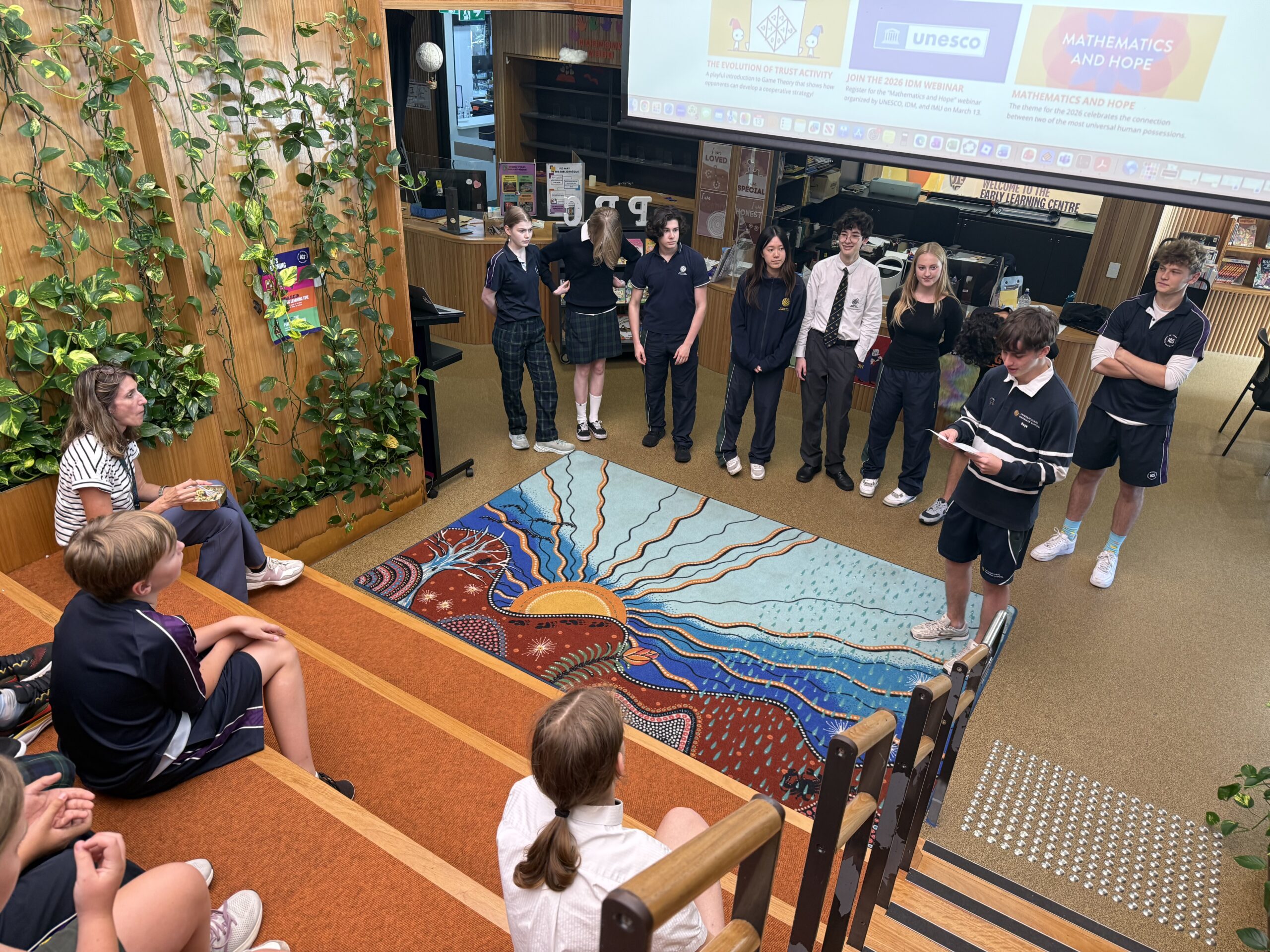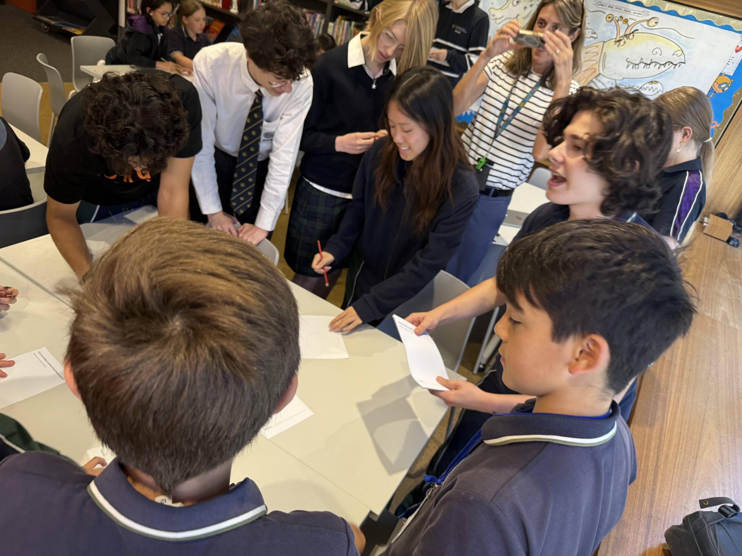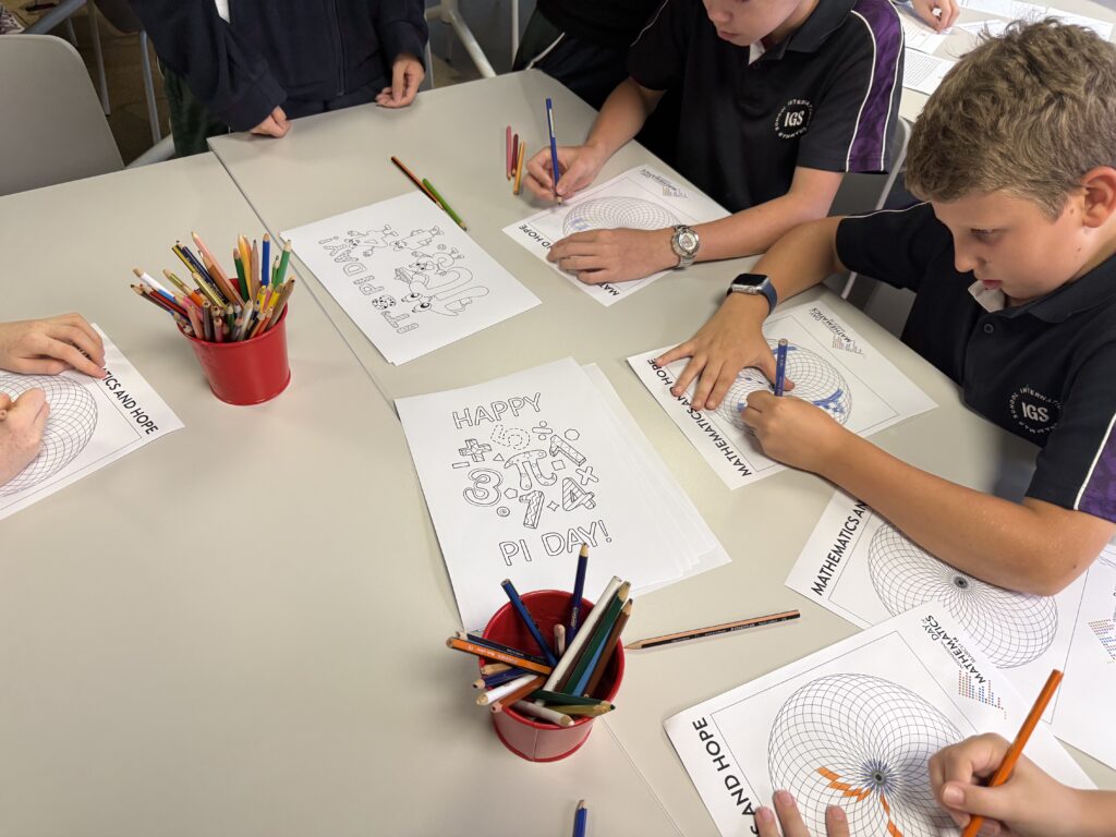 The students spent the day exploring the famous number π and its special connection to circles. It was a blend of logic and creativity, with activities ranging from using an online demonstration to investigate the relationship between circumference and diameter, to hunting for their own birthdays hidden deep within pi’s endless sequence. We even brought some art into the mix with colouring competitions and freehand circle drawing!