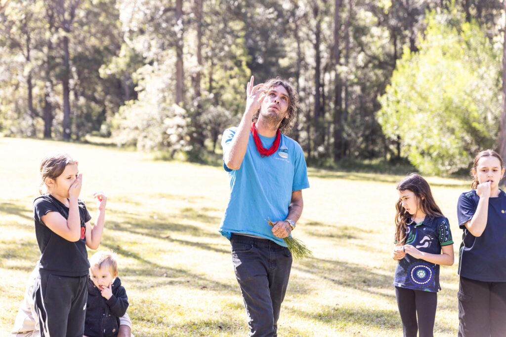 Following the ceremony, students engaged in traditional song and dance based on local songlines and the stories they carry. Everyone was captivated by Jacob’s retelling of Dharrawal dreamtime stories about the Nyow’ora (Black Cockatoo), the Galinjaarn (Crimson Rosella), and the nearby Gaanbiwarra (Fire Mountain).